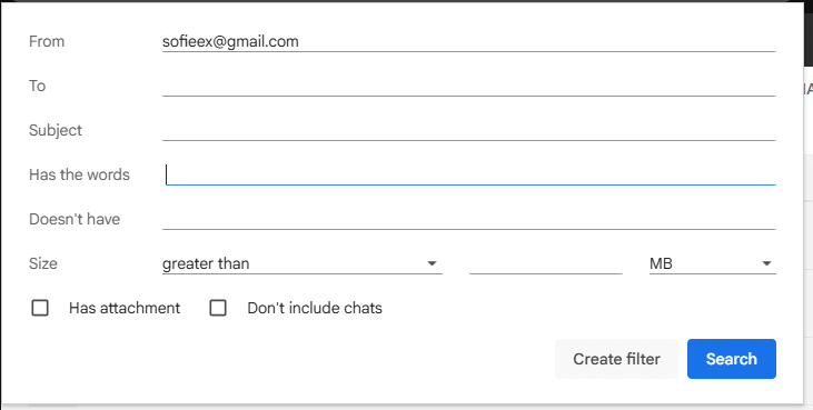 In the form that pops up enter the email address you want to block in the ‘From’ field. The other fields you can leave unless there are any other criteria you want to apply.